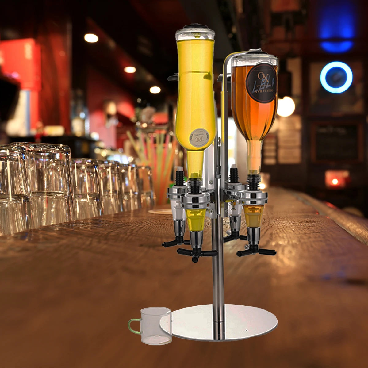 מתקן נירוסטה מסתובב עם מנגנוני מזיגה מדויקים – מתאים ל-4 בקבוקים